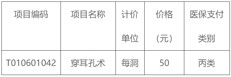 根据《洛阳市公立医院机构医疗服务价格汇编》实行市场调节价医疗服务项目的要求,现对“穿耳孔术”等特需医疗服务项目及市场调节价收费价格予以公示,具体价格详见下表。