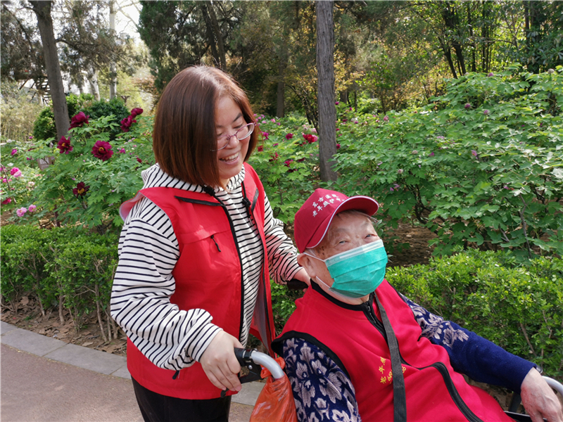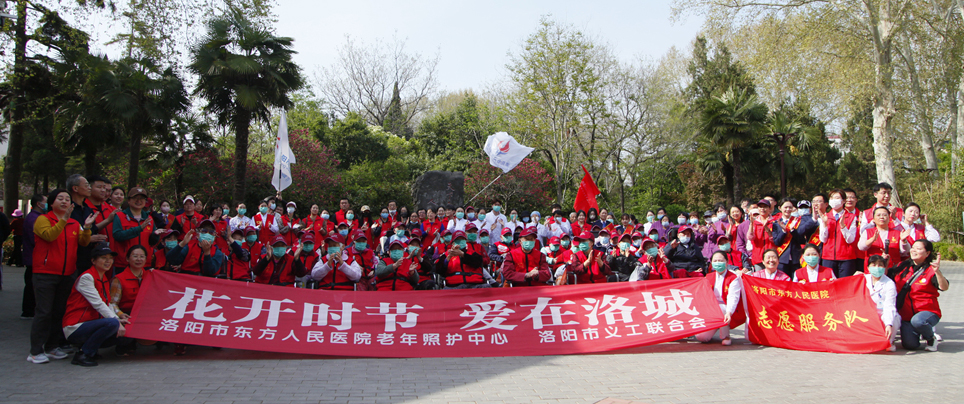 4月8日,福利吧 、洛阳市义工联合会、洛阳市轨道集团运营分公司客运部、中国人寿保险股份有限公司洛阳分公司联合组织新时代文明实践志愿者服务活动,带领生活在东方老年照护中心的老人们去牡丹公园赏花。