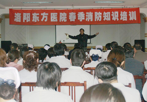 公安科邀请了洛阳市园安消防安全宣传中心主任程鹏德教官为大家举办春季消防安全知识培训。程教官给在场的员工进行了消防灭火器的使用示范和指导,同时详细讲解了遇危急情况如何对病人进行疏散。