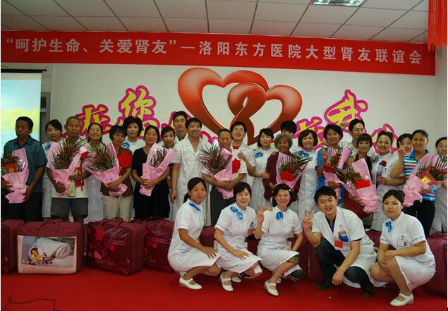 血液净化科肾友休息大厅,“呵护生命,关爱肾友”大型肾友联谊会如期举行。近百名血液透析患者、家属和血液净化科全体医护人员参加了此次联谊会。