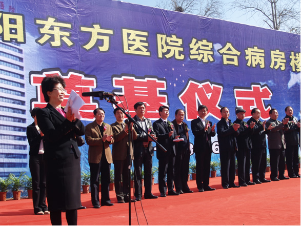 【洛阳东方医院隆重举行综合病房楼奠基仪式】3月16日上午,洛阳东方医院利用德国促进性贷款新建综合病房楼奠基仪式在外科楼东侧广场上隆重举行。原洛阳市人大常委会主任刘典立、原洛阳市政协主席潘汉平、原洛阳市政协副主席宗廷轩、洛阳市卫生局副局长廖明早、洛阳市发改委副主任杜建华等相关领导出席了奠基仪式,并为新楼奠基填上第一铲土。此次动工的新综合病房楼由河南六建建筑集团有限公司承建,建筑总面积38650平方米(含地上19层、地下2层),内设现代化层流净化手术室11间、重症监护中心、检验中心、中心供应室及15个护理单元,开设床位600张。整个工程预计在两年内完成,届时医院建筑总面积将达到近8万平方米,开放病床1000张,年门诊人数将达到70余万人次,从而大大改善东方医院的就医环境,促进医院上规模、上档次、上水平,更好地满足人民群众的医疗服务需求,实现医院再次腾飞。